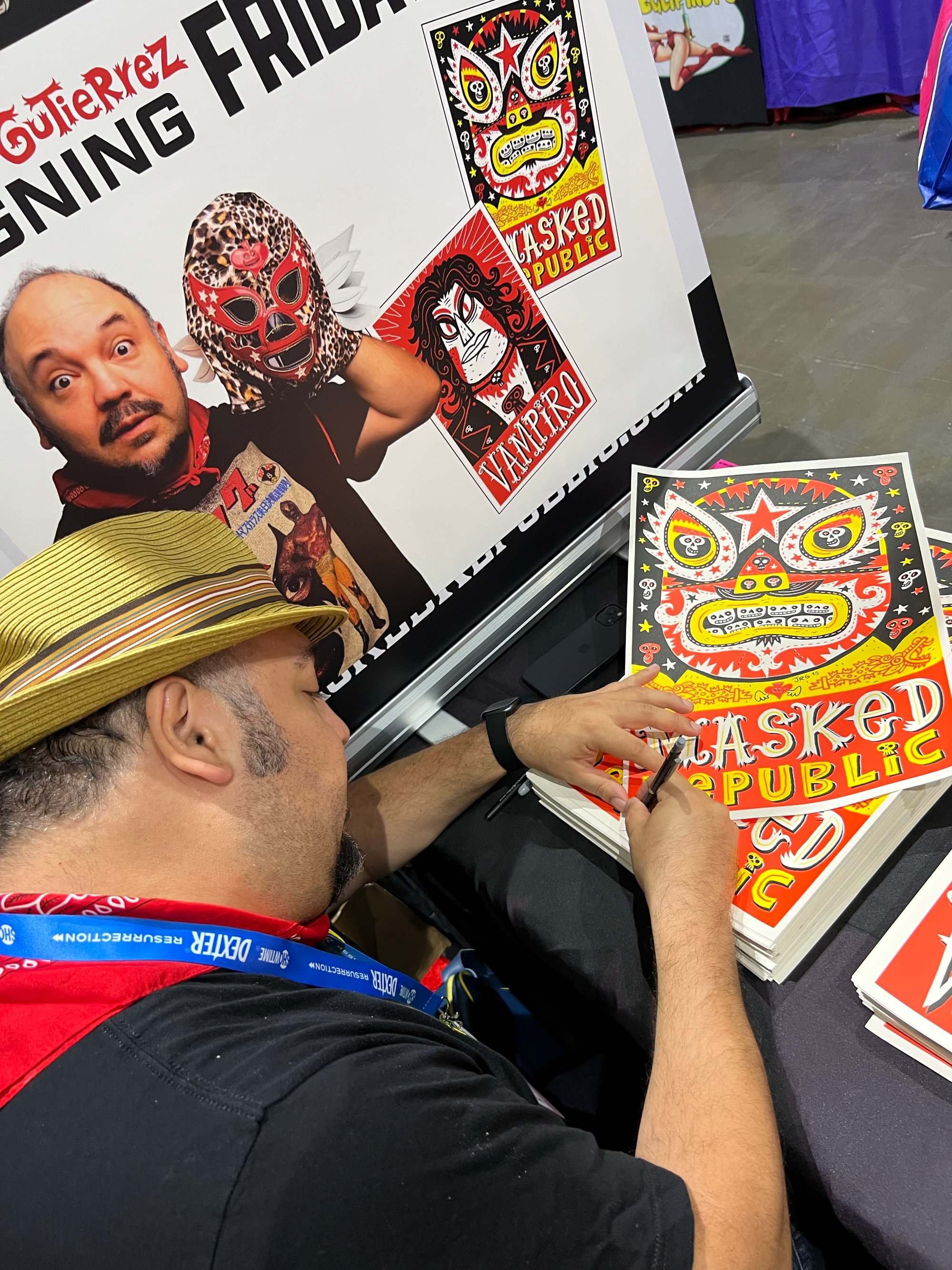 Creator/Director/Artist Jorge R. Gutierrez (El Tigre: The Adventures of Manny Rivera, Book of Life, Maya and the Three and the upcoming El Guapo vs. The Narco Vampires) has created two Masked Republic collaboration prints - silkscreened by hand in Tijuana, MX. Limited to 100 of each, individually numbered.