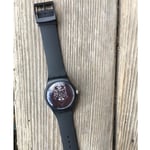 An extremely comfortable soft eco-friendly silicone band surrounds a plastic body and clasp.